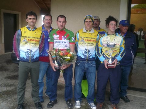 On reconnait de gauche à droite les 3 coureurs du prix d'équipe: Stéphane VALLEE(12ème), Morgane ANSERMIN(8ème) et Romain FERRANDON (4ème).
