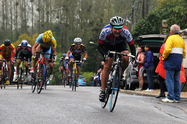 En D3, les Columériens ont bien animé la course avec Féfé souvent aux avant-postes, Olivier Renais et Patrick Mondamert auteur d'une attaque au kilomètre et repris à moins de 200 m de la ligne. Au final Olivier 10ème, Patrick 23ème et Féfé 46ème et puis Pascal Baudry 62ème? ( tiens je l'ai vu sur le bord de la route pendant la course?!)